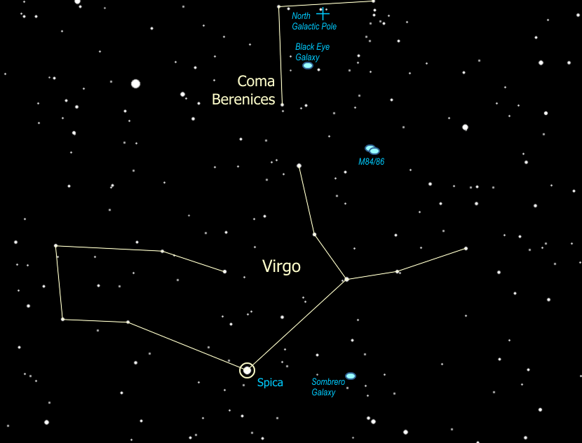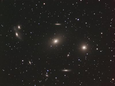 We will put the telescope right at the core of this galactic cluster, on M84 and M86, two elliptical galaxies. With a larger scope and a dark sky we will be able to see that there are actually four (or more) other, smaller & fainter, galaxies in the same field of view.