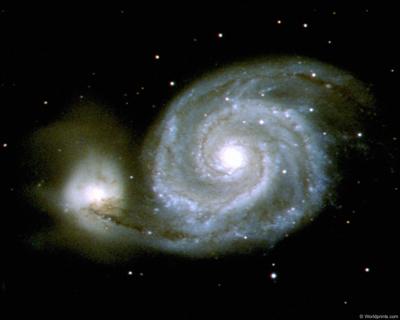 This region of interesting galaxies sweeps all the way up to the Big Dipper, and all the way down to Corvus the Crow. Just below the handle of the Dipper (officially in the faint neighboring constellation of Canes Venateces) is one of the coolest-looking galaxies for us to get our telescope on, The Whirlpool Galaxy.