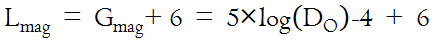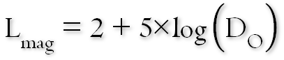Lmag = 2 + 5×log(DO) = 2 + 5×log(90) = 2 + 5×1.95 = 11.75.