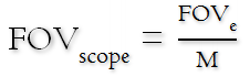 FOVscope | Field of view of the scope. Tells you how much of the sky you see in the image in the telescope. This is the distance from one side of the eyepiece image to the other, expressed in degrees or minutes of arc across the sky. |