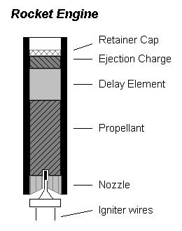- Delay Element - provides time delay between propellant burnout and ejection charge ignition so recovery