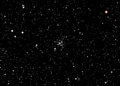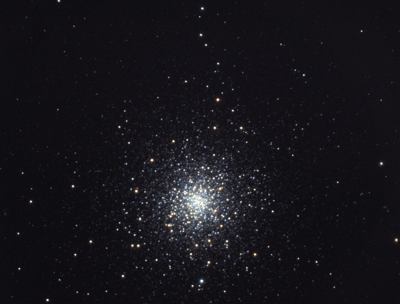 What's so interesting about this globular cluster is that it's in the wrong part of the sky. All the clusters we've looked at are open clusters. Globular clusters are very different, and this globular cluster is all alone on this side of the sky. The summer sky is just filled with globular clusters -- for some reason all the globular clusters are close to the center of the Milky Way galaxy, and in the summer we are looking toward the center of the galaxy. Now we are looking out toward the edge of the galactic disk, and there's this one lone globular cluster -- why would that be?